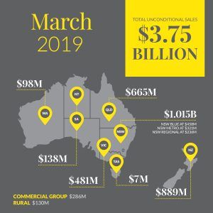 And so our March 2019 results were keenly anticipated and our overall results came in at $3.75B in traded sales – down 11 per cent on last year. The headline sales number was certainly a much better result than February, because our overall drop was less and our NSW results are showing some promising signs.